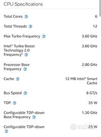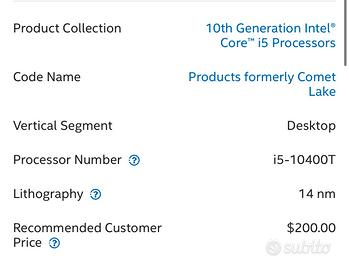 CPU INTEL CORE I5 10400T LGA1200 6/12TH Solo cpu senza dissipatore.