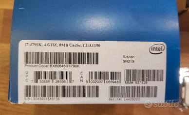 Processore Intel Core i7-4790K 4.00-4.40GHz Socket 1150 con dissipatore. Il processore è perfettamente funzionante e non è stato mai overcloccato, il dissipatore non è stato mai usato. Completa del suo imballo, se vedete questo annuncio l’oggetto è ancora disponibile, grazie