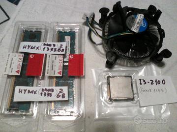 Cpu Intel 3° generazione, Sandy Bridge socket 1555, velocità 3.10 GHz (TDP 65W ma consuma meno ...); grafica integrata Intel® HD Graphics 2000; dissipatore stock Intel (molto silenzioso), PWM 4pin; 2 banchi Hynix da 2+2 Gb memoria DDR3 1066/1333, TOT 4Gb; Tutto regolarmente funzionante. Consegna a mano o spedizione a carico. # grafica video vga monitor computer desktop notebook portatile schermo pc memoria ram ddr3 dimm processore cpu socket ventola fan intel i5 i3 i7 1155 #