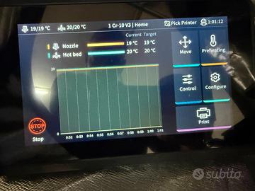 Vendo per inutilizzo: - CR10-V3 direct drive, area di stampa 300x300x400 mm - Kit Binari lineari + staffe in alluminio su tutti gli assi - Creality Sonic Pad 7 pollici per una stampa più veloce e controllo remoto - Piastra letto di stampa in Pei - Hotbreak in titanio e nozzle placcato - Creality Cr-touch per livellamento automatico letto - Box termico 75x70x90 cm, utile per stampare materiali tecnici - Essiccatore per filamenti Jayo nuovo - Tantissimi ricambi e pezzi originali Il valore del blocco supera ampiamente i 1000€, ma lo svendo per inutilizzo. Resto a disposizione per informazioni o piccole prove di stampa.
