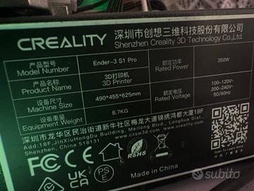 Vendo Creality Ender 3 S1 Pro, stampante 3D, perfetta per iniziare con la stampa 3D.