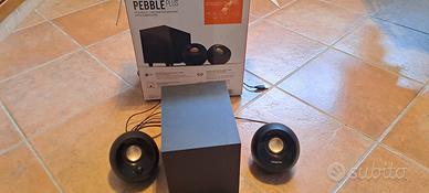 Altoparlanti desktop Creative Pebble Plus 2.1 alimentati tramite USB con subwoofer down-firing e driver far-field, potenza totale fino a 8 W RMS per PC e portatili (Nero) PRATICAMENTE NUOVI E MAI USATI IN QUANTO INSTALLATI SU PC DI BACKUP.