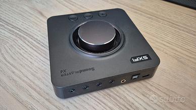Vendo per passaggio ad altro modello scheda audio esterna Creative Sound Blaster X4. Jack 3,5 mm cuffie (porta ibrida TRRS) Jack 3,5 mm microfono Uscite analogiche per configurazioni 2.0 / 2.1 / 5.1 / 7.1 Ingresso line-in / ottico ibrido Uscita ottica Porta USB‑C per alimentazione e dati Compatibilità: PC, Mac, PS5, PS4 e Nintendo Switch Audio ad alta risoluzione (24 bit / 192 kHz)
