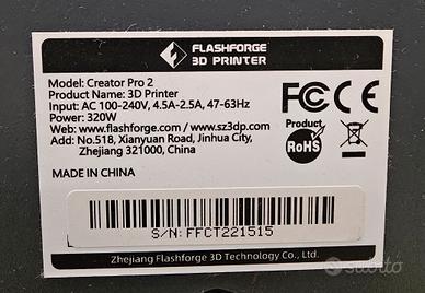 Vendo FlashForge Creator Pro 2 in ottime condizioni estetiche e completa di tutto.