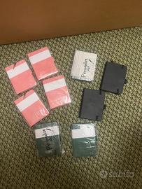 Fucsia 10 scatoline , Tiffany 4, Nero 6, Verdi 5, Bianche 7, Viola 6, Rosa 6, Bordeaux 1
