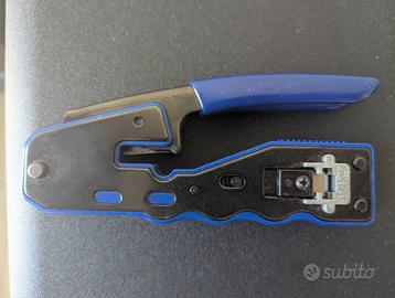 Pinza crimpatrice professionale in acciaio per lan ethernet RJ45 con tecnologia passante idonea per plug CAT.5e, CAT.6 e CAT.7 Completa di scatola e diversi connettori omaggio. La tecnologia passante semplifica la fase di crimpatura rendendo così la procedura più rapida minimizzando gli errori di cablaggio, la pinza crimpa il plug e taglia i fili in eccesso. Perfette condizioni. Solo ritiro a mano Milano, zona Niguarda Prezzo Amazon 39€ vendo a 20€ non trattabili