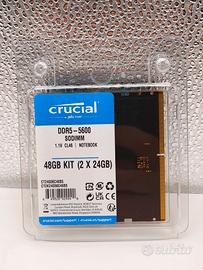 Potenzia il tuo laptop o Mini PC con la RAM DDR5 di nuova generazione firmata Micron/Crucial — 45 anni di expertise nella produzione di memorie. Questo kit dual channel da 48GB (2x24GB) a 5600MHz offre il 50% di banda in più rispetto al DDR4, trasformando radicalmente caricamento applicazioni, multitasking e reattività del sistema.