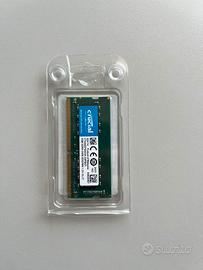 Vendo come da annuncio, memorie Crucial 4GB DDR4 2400 MHz Tipo di memoria: Unregistered (unbuffered) Latenza CAS: 17 Fattore di forma memoria: 260-pin SO-DIMM Tipo di RAM: DDR4 Memoria Interna: 4 GB Velocità memoria: 2400 MHz Disponibilità due pezzi, il prezzo è da intendersi per singolo modulo.
