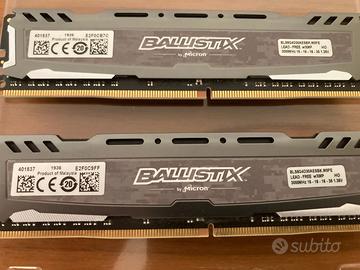 Vendo kit di memoria RAM Crucial Ballistix da 16GB totali, composto da 2 moduli da 8GB ciascuno. Codice: BLS8G4D30AESBK.M8FE Specifiche: Capacità: 16GB (2x8GB) Tipo: DDR4 Frequenza: 3000MHz Latenza: CL16 (16-16-16-36) Voltaggio: 1.35V Condizione: perfettamente funzionanti Le RAM sono state utilizzate in un PC desktop e non hanno mai dato problemi. Vendute per upgrade. Ottime per gaming e uso generale. Consegna: Scambio a mano a Bologna Spedizione disponibile Contatti: Scrivimi pure per qualsiasi informazione o prova. ❗ Si richiede serietà. Astenersi perditempo, affaristi, truffatori e proposte fuori luogo.