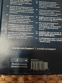 Vendo 4 banchi CRUCIAL BALLISTIX GAMING MEMORY 8gb ( 4 x 8gb ) 3200mhz CL16 RGB per un totale di 32gb di memoria DDR4 perfettamente funzionanti con scatola originale.