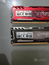 Vendo kit di memoria RAM DDR4 da 16GB totali, composto da due moduli da 8GB ciascuno. Si tratta delle Crucial Ballistix Sport LT, memorie di alta qualità dotate di dissipatore in alluminio per mantenere basse le temperature. Come visibile in foto, un modulo è di colore Rosso e l'altro Grigio (estetica diversa ma specifiche identiche, lavorano perfettamente in Dual Channel). Capacità totale: 16GB (2x8GB) Tecnologia: DDR4 SDRAM - 288-pin (per PC Desktop fissi) Velocità: 2400MHz (PC4-19200) Condizioni: Usate, perfettamente funzionanti, mai fatto overclock. Ideali per chi vuole potenziare un PC ufficio, casa o gaming economico. Compatibili con tutte le schede madri DDR4.