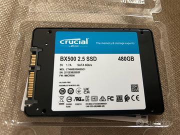 Vendo Crucial SSD BX500 mai utilizzato acquistato nuovo per errore e non più restituibile. Crucial BX500 480 GB CT480BX500SSD1 fino a 540 MB/s, SSD Interno, 3D NAND, SATA, 2.5 Pollici, Nero Si avvia più velocemente; Carica i file più rapidamente; Ottimizza la risposta del sistema 300% più veloce di un disco rigido tradizionale Migliora la durata di vita della batteria perché ha un’efficienza energetica 45 volte superiore rispetto ad un disco rigido tradizionale Micron 3D NAND – migliorare la tecnologia di memoria e di archiviazione da 40 anni Contenuto della confezione Crucial BX500, software di clonazione Acronis True Image for Crucial e istruzioni per l'installazione, fino all'80% di risparmio su Acronis Cyber Protect Home