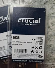 Vendo (anche separatamente) per errato acquisto quattro moduli RAM DDR5 originali Crucial, velocità 5600MHz