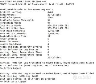 Vendo ssd nvme Crucial P310 da 2TB. Il disco ha solo 500GB di dati scritti ed è stato acceso per un totale di 1 ora (come potete vedere da i dati smart nella seconda foto). Praticamente nuovo, ma non ho scatola, sarà spedito in imballaggio protetto. Prezzo trattabile.