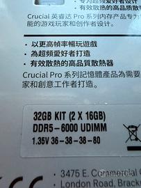 Crucial Pro RAM DDR5 32GB Kit (2x16GB) 6000MHz CL36, Overclocking Gaming, Intel XMP 3.0 / AMD EXPO, Memoria PC, Nero - CP2K16G60C36U5B - nuove sigillate. - No affaristi e perditempo Evitate di fare offerte che non verrano prese in considerazione