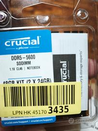Crucial RAM DDR5 48GB Kit (2x24GB) 5600MHz SODIMM Nuova, per portatili, mini PC, ecc