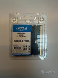 Vendo kit di memoria Crucial DDR5 da 64GB (2x32GB)_ CT2K32G56C46S5 con frequenza 5600MHz, ideale per chi cerca alte prestazioni in ambito gaming, rendering, modellazione 3D e multitasking avanzato. MAI USATO. NUOVO. Spedisco o consegno a Mano a Milano