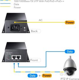 Converte una porta Gigabit non PoE in una porta Gigabit PoE / PoE + / PoE ++ e collega in rete un dispositivo PoE situato a una distanza massima di 100 metri (328 piedi). Ideale per piccole installazioni di telecamere di sorveglianza PoE PTZ ad alta potenza o punto di accesso wireless PoE.