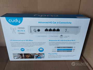 Cudy LT700E modem router LTE 4G CAT 6, NUOVO aperto e provato una sola volta, 300 Mbps, dotato di carrier aggregation, Wi-Fi AC1200 dual band 2,4 Ghz e 5 Ghz, Porte Gigabit, MESH, VPN. Comprato pochi giorni fa per testare una connessione con Sim LTE funziona perfettamente ma l'antenna BTS dell'operatore telefonico è molto lontana e quindi vendo per passaggio a router da esterno. Riceve bene ed è facile da configurare, è sbloccato e funziona con qualsiasi operatore telefonico. In questa offerta c'è anche uno switch Cudy 8 porte NUOVO sigillato che era compreso nell'acquisto del modem. I modem Cudy sono di buona qualità anche se il marchio è poco conosciuto, ci sono recensioni positive online per il modello gemello ma con antenne esterne che monta lo stesso hardware, in più usa un sistema operativo basato su Linux apprezzato per la completezza delle sue funzioni. Zone Ostia Lido, Centro Commerciale Da Vinci o Fiumicino aeroporto.