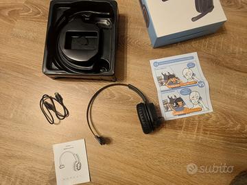 cuffia nuova mai utilizzata , solo una volta per prova ma purtroppo non compatibile con il mio software di lavoro. l'ho collegata allo artpgone android e funziona perfettamente. ha funzioni come muto automatico alzando la cuffia, riduzione rumore esterno, batteria ricaricabile, bluetooth 5.2 con raggio 10 metri