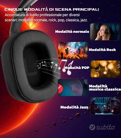 5 modalità di ascolto (Rock, Pop, Classica, Jazz, Normale) e driver da 40mm con Bass Boost da Gravità Inversa per un audio potente e dettagliato.
