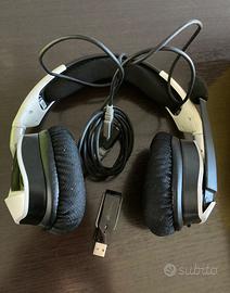 Cuffie PC/MAC/PLAYSTATION usate ma ben tenute con scatola d’acquisto. Tempo di durata carica circa 4 ore.