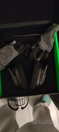 Cuffie praticamente nuove, aperto per fare foto e controllare funzionamento. Per qualsiasi informazione in pm. Driver specifications 50 mm Driver type Razer™ TriForce Titanium Earcups Oval Ear Cushions Inner Earcup Diameter Width: 42 mm / 1.65 in Length: 62 mm / 2.44 in Earpads material Pressure-Relieving Memory Foam Noise Cancelling Advanced Passive Noise Isolation Connection type Type A Wireless (2.4 GHz), Bluetooth 5.2 Cable Length None Weight 320 g / 0.71 lbs Microphone Style Detachable Super Wideband Pick-up Pattern Unidirectional Microphone Frequency Response 100 Hz - 10 kHz Microphone Sensitivity (@1kHz) -42 dBV / Pa, 1 kHz Virtual Surround Encoding THX® Spatial Audio Volume Control Volume up and down Other Controls 2.4 GHz Wireless and Bluetooth Toggle (SmartSwitch) Volume up and down Mic mute on/off toggle Audio profiles switcher Battery life Up to 70 hours