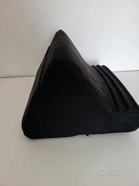 Vendo cuscino/supporto per tablet, colore nero, morbido e mai usato. Lungo 28 cm, alto 17 cm e profondo 25 cm. Sul retro presenta due tasche per smartphone, telecomandi ecc. Condizioni perfette.