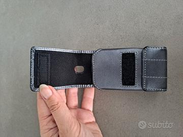 Custodia Canon x macchina fotografica o cellulare piccolo, apertura in velcro e velcro posteriore per agganciarla.