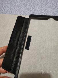 In finta pelle. Permette di visualizzare il tablet in posizione orizzontale.