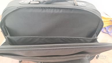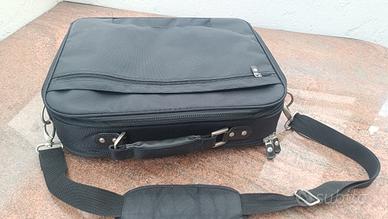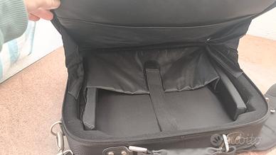 Borsa da trasporto per laptop a spalla di Dell. Può contenere un laptop da 15,6". Cinghia per bloccarla insieme a un pezzo di imbottitura extra mobile. 4 tasche con cerniera totali con molte tasche e pezzi di cinghia per contenere tutto. Fondo rigido per l'impostazione da sola. Maniglia tipo valigetta insieme a tracolla. Mai usata.