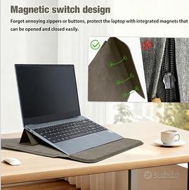Custodia sleeve per laptop e MacBook elegante e funzionale, ideale per lavoro, studio e viaggi. Nuova. Design intelligente con supporto regolabile integrato e poggiapolsi ergonomico, perfetta per un utilizzo prolungato del computer.