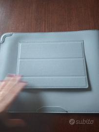 Custodia per tablet /PC grigio chiara con piccola borsa per contenere cavi.14 pollici.Finta pelle.Nuova