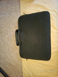 Custodia per computer portatile in tessuto, misure 27.5cm x 42cm, dotata di tracolla. Usata pochissimo.