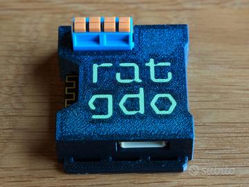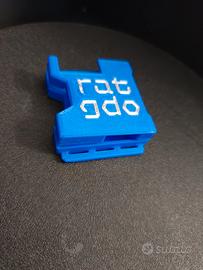 Le parti superiore e inferiore si incastrano a pressione senza l'utilizzo di ferramenta o adesivi. Tutte le porte sono esposte in modo che la manutenzione possa essere effettuata senza smontaggio. Infatti, la custodia può essere fissata mentre il ratgdo è in uso. La spia di stato è visibile attraverso la fessura dell'antenna e l'antenna è esposta per una ricezione WiFi ottimale. Sono presenti punti di fissaggio per fascette stringicavo lungo due lati per fissare facilmente la custodia praticamente ovunque, se lo si desidera.
