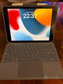 Vendo custodia con tastiera per tablet ipad generazione 9. È come nuovo, usato pochissimo e lo vendo solo perché cambio il tablet e non posso usarlo. È della logitech