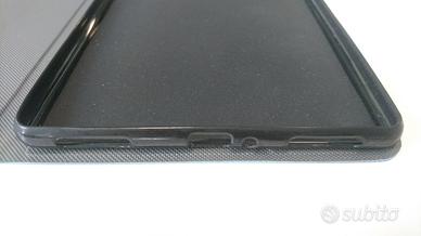 Per inutilizzo, cedesi custodia rigida tablet in colore blu jeans. Si piega per posizionare il tablet in modalità visione video. La diagonale totale misura 9 pollici. In foto si evincono i fori dei cavi, pulsanti, fotocamera.
