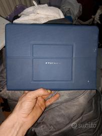 Vendo custodia protettiva universale per tablet (compatibile con modelli da 9 a 10.1 pollici) della Tucano. Il case è di colore blu scuro, molto elegante e professionale. Caratteristiche principali: Tastiera Bluetooth integrata: Layout Italiano (QWERTY), sottile e precisa. Sistema di aggancio universale: Quattro elastici angolari in silicone ultra-resistente che si adattano a diverse marche di tablet. Funzione stand: La custodia si piega per permettere l'utilizzo del tablet come un laptop. Ricarica: Tramite porta Micro-USB (laterale).