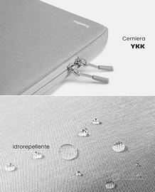Custodia Tomtoc per Laptop 16" pratica, protettiva e robusta munita di scomparto anteriore accessori, chiusura scomparti a zip, protezione integrale con imbottitura interna felpata e vellutata e protezione della cerniera interna in velluto, colore grigio