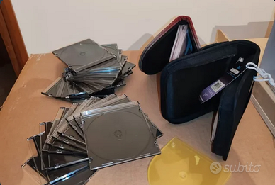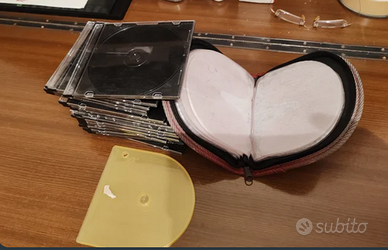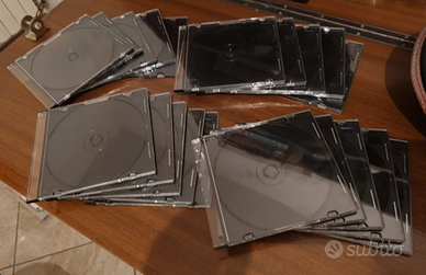 Offro 20 custodie per CD/DVD in buono stato di conservazione, regalo una custodia sempre slim ma di forma tondeggiante di colore giallo, visibile in foto; nell'offerta sono compresi anche 2 comodi porta CD/DVD, di cui, uno usato da 12 CD ed uno nuovo da 24 CD.
