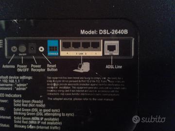 Vendo D-Link DSL-2640B Modem router Wireless G ADSL2. Tecnologia di connessione: Wireless, cablato; Switch integrato: Switch a 4 porte10/100; Banda di frequenza:2.4GHz; Data Link Protocol: Ethernet, FastEthernet, IEEE802.11b,IEEE802.11g; Metodo Spread Spectrum:OFDM,DSSS;