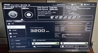 - Frequenza in Overclock a 3200Mhz con profilo XMP attivato sulla motherboard.