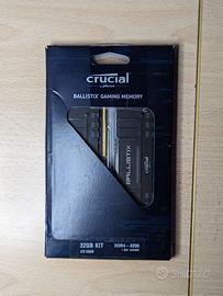 Vendo Crucial Ballistix (BL2K16G32C16U4B) 3200 MHz, DDR4, DRAM, Memoria Gaming Kit per Computer Fissi, 32GB (16GB x2), CL16, Nero in ottime condizioni.