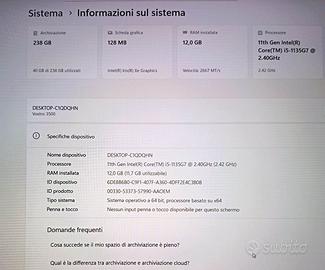 Disco rigido primario: SSD M.2 MVMe PCIe, 256 GB Solid State Drive (upgradabile fino a 2 TB)