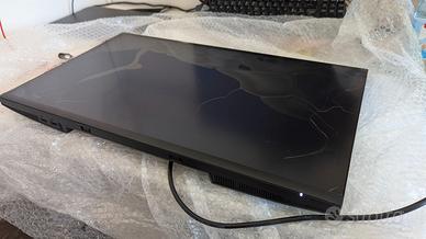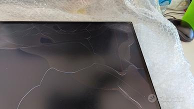 * **Schermo:** Pesantemente crepato su tutta l'area del display, rendendolo inutilizzabile per la visualizzazione. Questo danno è una diretta conseguenza della caduta del monitor.