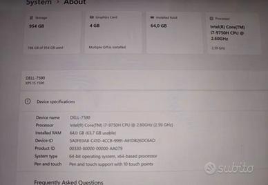 Vendo Dell XPS 15 7590 in condizioni eccellenti.