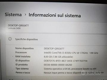Processore Intel i5-8350u@17Ghz