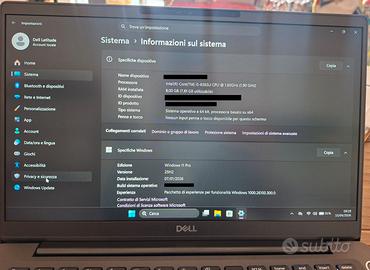 Condizioni: Pari al nuovo – Usato solo 3 volte per test Data d'acquisto: 07/01/2026 Garanzia: Documentazione disponibile Descrizione del prodotto Vendo per inutilizzo splendido ultrabook professionale Dell Latitude 7400. Il computer è in condizioni estetiche e funzionali impeccabili, privo di graffi o segni d'usura. La scocca è nell'elegante e resistente finitura in fibra di carbonio, tipica della serie top di gamma 7000 di Dell. È una macchina progettata per il business: leggera, estremamente robusta e dotata di una tastiera retroilluminata con feedback eccellente. Specifiche Tecniche: Processore: Intel® Core™ i5-8365U (fino a 4.10 GHz in Turbo Boost) con tecnologia vPro. RAM: 8 GB (espandibile). Archiviazione: SSD ad alta velocità (avvio immediato di Windows). Sistema Operativo: Windows 11 Pro originale (versione aggiornata 25H2). Display: Schermo antiriflesso ad alta definizione. Sicurezza: Sensore di impronte digitali integrato nel tasto di accensione e lettore NFC. Connettività: Wi-Fi dual band, Bluetooth, USB-C/Thunderbolt, HDMI.