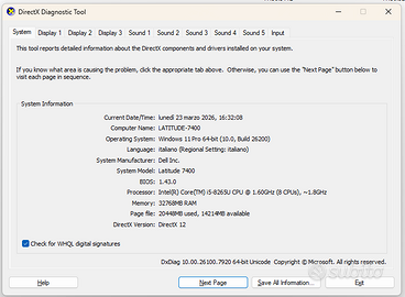 Dell Latitude 7400 Processore Intel Core i5-8265U | 8 Generazione 1800 MHz RAM 32GB DDR4 Memoria SSD 512GB NVMe Video Intel® UHD Graphics 620 Display 14 Pollici Full HD Anti-Glare Windows 11 Pro Licenziato e Attivato. Tastiera Retroilluminata Batteria 3-3.5 ore 2 USB 3.1 Gen 1, 1 Thunderbolt 3 (USB Type-C), 1 HDMI 1.4, 1 Jack audio combinato, 1 Lettore microSD 4.0, 1 Lettore Smart Card, 1 Slot micro-SIM, 1 Slot Noble Wedge Caricatore Originale Dell Stato Tecnico ed Estetico Ideale.