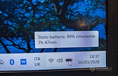 Notebook Dell Latitude 7480 14” in ottime condizioni con tastiera UK retroilluminata, la batteria è NUOVA con autonomia stimata da Windows di circa 7 ore ma dipende dal software utilizzato. Caratteristiche tecniche: •Processore - Intel Core i5-7300U, 2,6 GHz •Schermo - 14'', HD 1920x1080 •Disco SSD - 256 GB SATA Micron •RAM - 8 GB DDR4 •Scheda video - Intel UHD Graphics 620 •Web camera, Wi-Fi, 3 USB 3.0, USB C, HDMI, LAN, schede SD, bluetooth, lettore smart card •Layout Tastiera – retroilluminata UK •Windows 11 Pro installato •Batteria - NUOVA •Alimentatore da 65W incluso Si tenga conto che la RAM, disco SSD M2 e la batteria hanno un valore commerciale che si avvicina ai 120 euro. Le foto e le caratteristiche riportate nell’annuncio sono quelle reali dell’oggetto in vendita. Sono un privato pertanto non rilascio ricevuta, non accetto nessun tipo di reso/rimborso, non posso rilasciare garanzia. Vige la regola VISTO E PIACIUTO. Dichiaro terminate le mie responsabilità dal momento in cui procedo alla spedizione dell’oggetto. Acquistando accetti le mie condizioni di vendita a prezzi bassissimi.